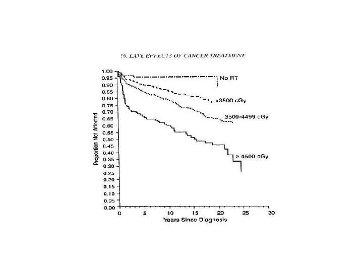 IQ loss in localized intracranial irradiation Thyroid, cardiac, pulmonary, and GI injury in craniospinal irradiation Sarcoma treatment