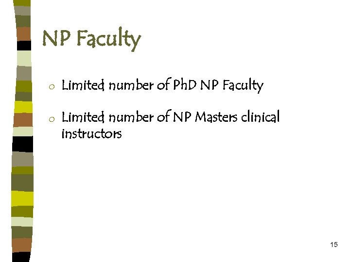 NP Faculty o Limited number of Ph. D NP Faculty o Limited number of NP Masters clinical instructors 15