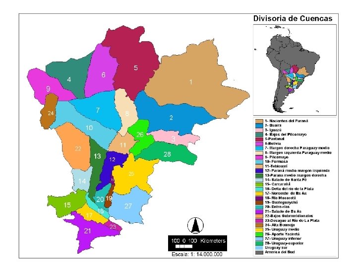 De La Plata River Basin – Description – Economic Relevance Description: Approximate Extension: ~ 3, 200, 000 km 2 5 countries comprised: Argentina (downstream) Bolivia Brazil (upstream) Paraguay Uruguay Main Rivers: Paraná, Paraguay, Uruguay, Iguazú, Pilcomayo, and Bermejo. Economic Relevance: Population: ~ 100, 000 inhabitants. 80% of the GNP’s of the five countries is produced in the Basin. More than 60 hydropower dams are built in its rivers, supplying 80% of the regional demand. Its rivers are partially navigable by river barge convoys. The Paraguay- Paraná waterway is being implemented.