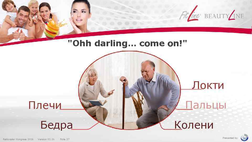 "Ohh darling… come on!" Локти Плечи Бедра Nationaler Kongress 2016 Version 01. 16 Folie 27 Пальцы Колени Presented by