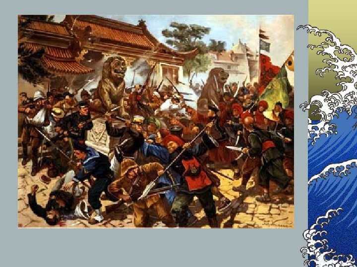 Boxer Rebellion © On June 21, 1900, after the Empress declared war on all foreign powers, the Boxers began a two-month assault on the legations in Beijing. © An international force of Japanese, Russian, German, American, British, Italian and Austro-Hungarian troops put down the uprising by August 14. © Spelled the end of the Qing Dynasty.