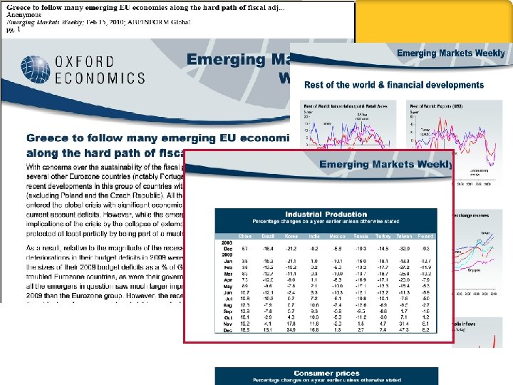 Прогнозы по странам, финансам и мировому потреблению от EIU: новинка 2009 Country Forecast Summaries (40 стран) (ежемесячно): § Средне- и долгосрочное макроэкономическое прогнозирование § Подробный политический анализ Country Finance Reports (страны G 20) (ежегодно): § Финансовые учреждения Эксклюзив Pro. Quest § Финансовая политика § Финансовое регулирование § Финансовые рынки § Финансовые методы World Commodity Forecast Reports