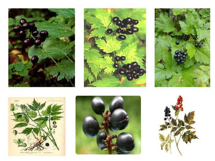 Листья крупные очерёдные, дважды или трижды тройчато рассечённые. Цветки мелкие, правильные, обоеполые, собранные в виде простых или разветвлённых кистей. Чашечка из четырёх беловатых, быстро опадающих листочков. Лепестки мелкие, лопатчатые, в числе 1— 6, иногда отсутствуют. Тычинки длиннее других частей цветка, многочисленные, нередко с расширенными в верхней части нитями. Пестиков 1— 8, с верхней яйцевидной завязью и сидячим широким рыльцем. Плоды — чёрные или красные блестящие, величиной с горошину многосемянные ягоды или орешки, иногда на длинных ножках.