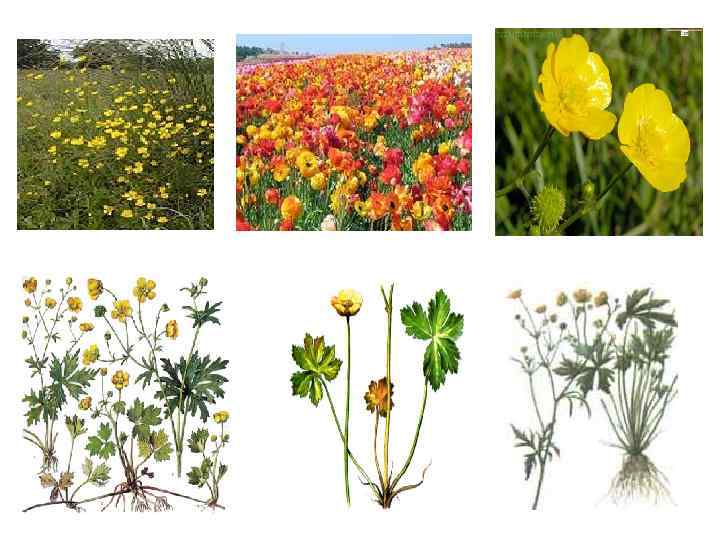 Лютиковые Ranunculáceae Семейство двудольных свободнолепестных растений. Представители семейства —однолетние, двулетние и многолетние травы иногда полукустарники и вьющиеся кустарники. У одних видов листья только прикорневые, у других ещё и стебельные, у большинства очередные (только у ломоноса супротивные) — без прилистников, цельные или пальчато- или перисто-рассечённые; основание черешка большей частью расширено в виде влагалища.