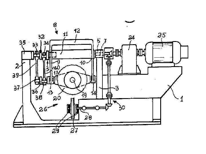 Летучая кривошипная пила для резки труб и проката • Реферат • Изобретение служит для резки труб и проката на ходу в горячем и холодном состоянии. Пила содержит станину с направляющими и каретку с пильным диском, установленную с возможностью движения по окружности посредством кривошипа. Направляющие станины расположены параллельно оси рольганга. На направляющих станины установлена тележка с направляющими, в которых установлена каретка, связанная с кривошипом посредством подшипника. На тележке установлен суппорт с прорезью для прохода пильного диска при резе. Суппорт служит для опоры трубы и проката при резе. Изобретение позволяет уменьшить массу и габариты пилы, повысив при этом качество реза. 5 ил.