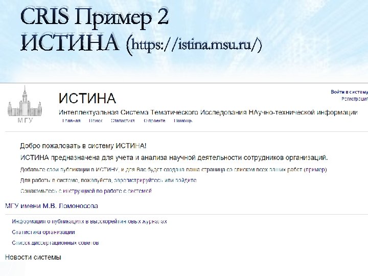CRIS Пример 2 ИСТИНА (https: //istina. msu. ru/)