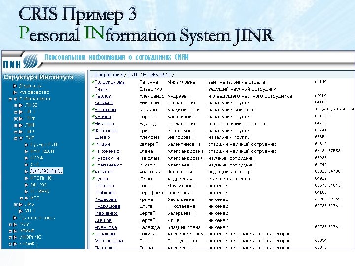 CRIS Пример 3 Personal INformation System JINR