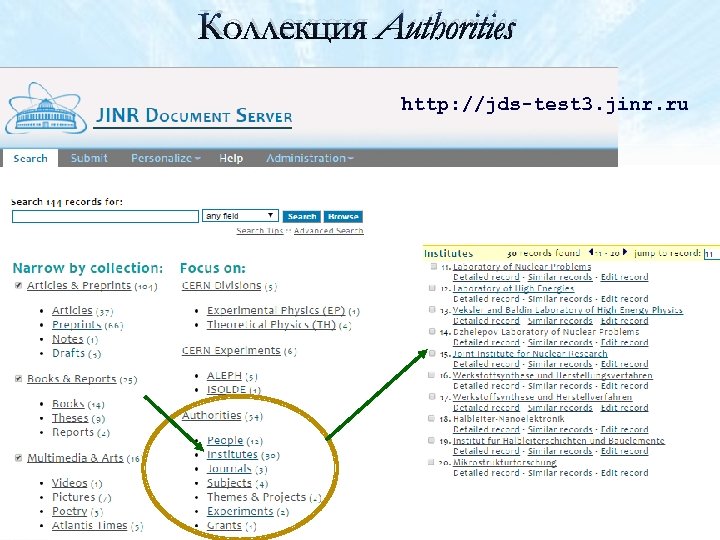 Коллекция Authorities http: //jds-test 3. jinr. ru