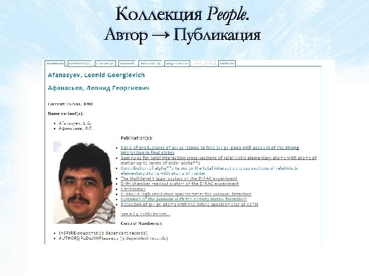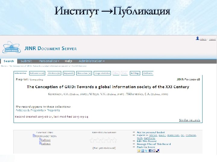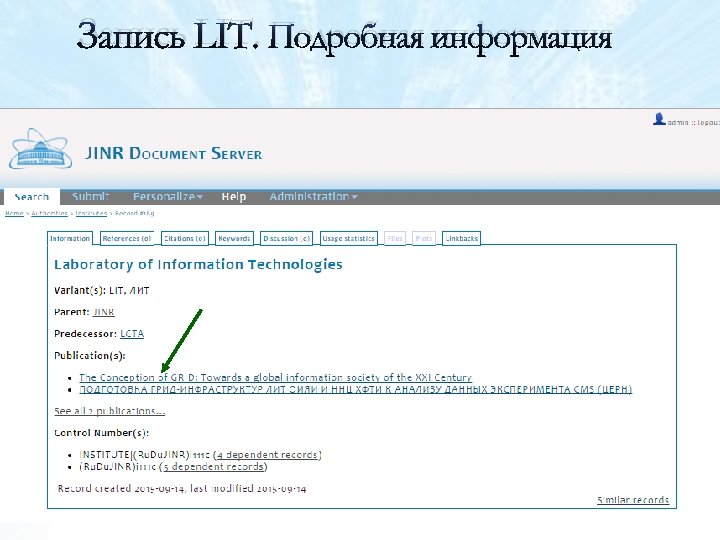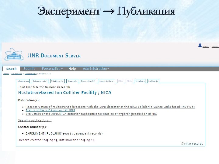 Коллекция Institutes. Запись JINR