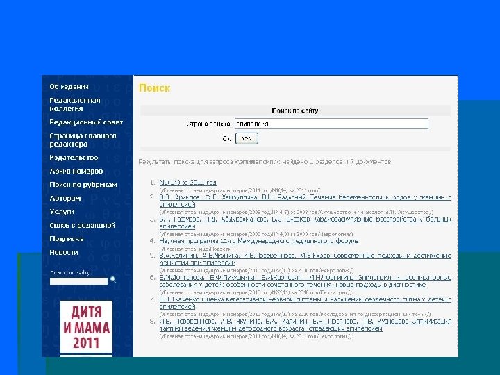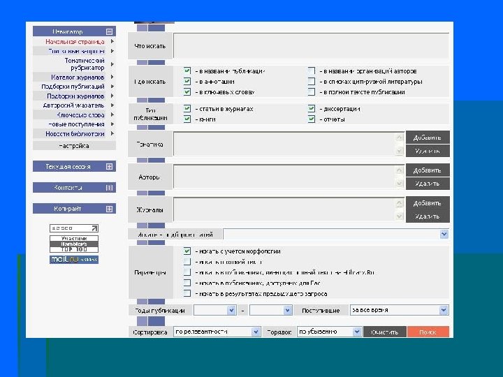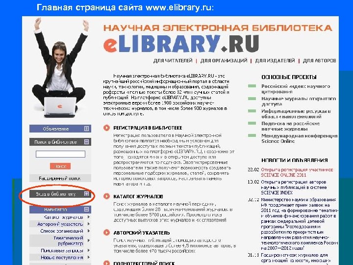 Главная страница сайта www. elibrary. ru: