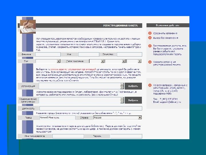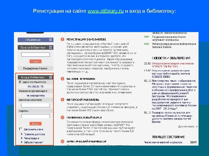 Регистрация на сайте www. elibrary. ru и вход в библиотеку: