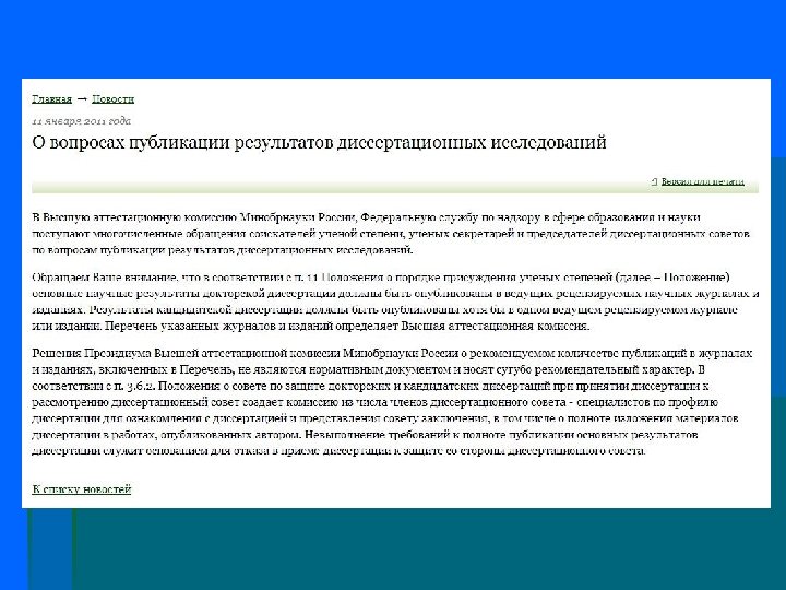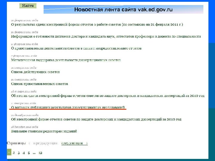 Новостная лента сайта vak. ed. gov. ru