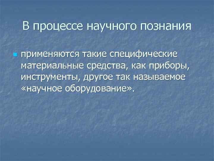 В процессе научного познания n применяются такие специфические материальные средства, как приборы, инструменты, другое так называемое «научное оборудование» .