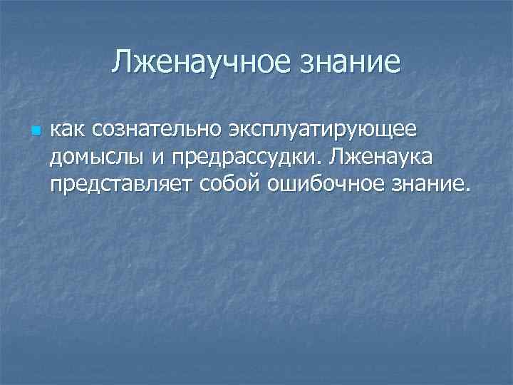 Лженаучное знание n как сознательно эксплуатирующее домыслы и предрассудки. Лженаука представляет собой ошибочное знание.