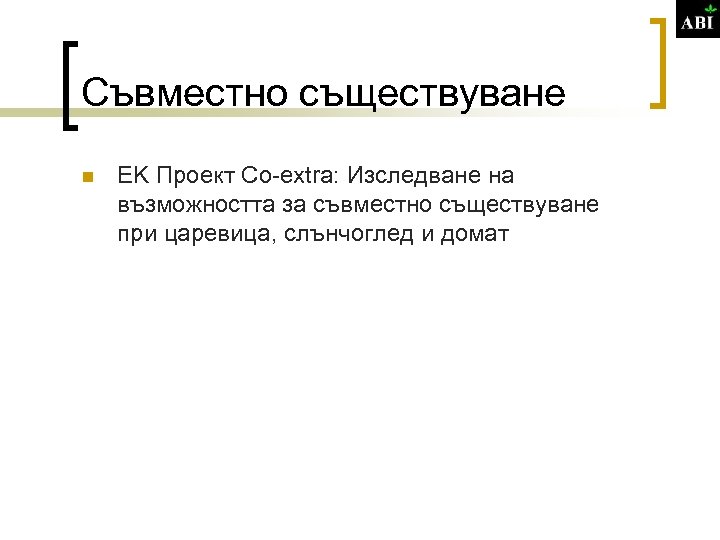 Съвместно съществуване n EK Проект Co-extra: Изследване на възможността за съвместно съществуване при царевица, слънчоглед и домат