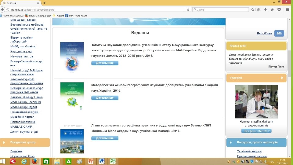 Сайт Малої академії наук України: ВИДАННЯ http: //man. gov. ua/ua/resource_center/publishing http: //man. gov. ua/ua/resource_center/workshop http: //intelect-tv. jimdo. com/