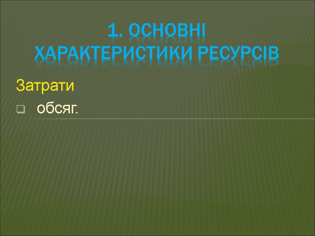 1. Основні ХАРАКТЕРИСТИКИ ресурсів Затрати обсяг.
