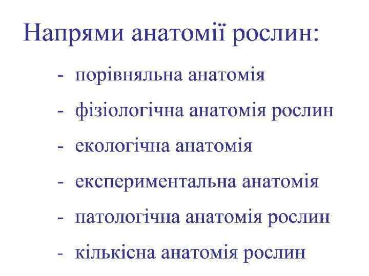 Рекомендована література: - Панюта О. О. , Ольхович О. П. Анатомія рослин – К. : Рада, 2009. – 272 с. - Брайон О. В. , Чикаленко В. Г. Анатомія рослин – К. : Вища школа, 1992. – 272 с. - Панюта О. О. , Ольхович О. П. , Капустян А. В. Анатомія рослин – К. : ТОВ “Авега”, 2012. – 110 с.
