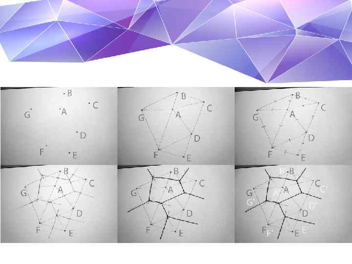 • Метод Вороного был усовершенствован Борисом Делоне. Который ввел понятие триангуляции. С помощью триангуляции Делоне можно описать практически любой «естественный» алгоритм. Мощность современных компьютеров уже достаточна для использования так называемых генетических алгоритмов с миллионами возможных комбинаций параметров. То, что получается на выходе, скорее напоминает нерукотворные творения