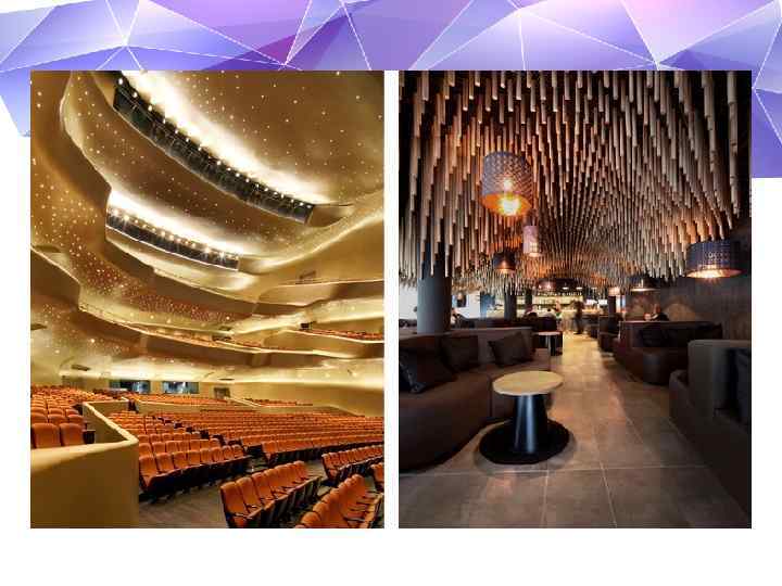 • Эстетика параметризма проникла и в современные интерьеры. Плавные лини, изогнутые геометрические паттерны создают ощущение сюрреализма. Стены и потолки перестают быть плоскими и статичными. Они открывают портал в иные измерения, обнажая кривизну пространства и времени в которых мы живем.