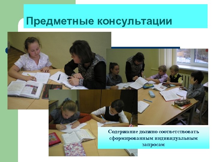 Предметные консультации Содержание должно соответствовать сформированным индивидуальным запросам