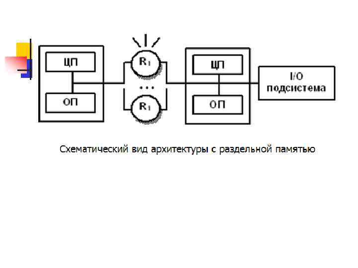 Недостатки: • отсутствие общей памяти заметно снижает скорость межпроцессорного обмена, поскольку нет общей среды для хранения данных, предназначенных для обмена между процессорами. Требуется специальная техника программирования для реализации обмена сообщениями между процессорами. • каждый процессор может использовать только ограниченный объем локального банка памяти. • вследствие указанных архитектурных недостатков требуются значительные усилия для того, чтобы максимально использовать системные ресурсы. Именно этим определяется высокая цена программного обеспечения для массивно-параллельных систем с раздельной памятью.