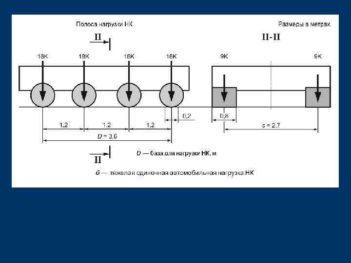 Нормативные нагрузки- временные вертикальные нагрузки от транспортных средств, принимаемые в виде условных нагрузок для проектирования автомобильных дорог общего пользования