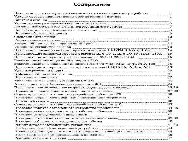 Назначение, состав и расположение на вагоне автосцепного устройства Автосцепное устройство служит для автоматического сцепления железнодорожного подвижного состава, переда чи и смягчения действия продольных усилий, возникаю щих при движении или остановке поезда, а также для удер жания вагонов на определенном расстоянии друг от друга. Автосцепные устройства подвижного состава россий ских железных дорог подразделяются на два типа: вагонные и паровозные. Автосцепное устройство вагонного типа уста новлено на пассажирских и грузовых вагонах, вагонах ди зель и электропоездов, электровозах и тепловозах, а паро возного — на паровозах и специальном подвижном составе Автосцепное устройство состоит из: — корпуса автосцепки с деталями механизма; — расцепного привода, включающего в себя рас цепной рычаг, кронштейн, державку и цепь; — центрирующего прибора, который включает в себя ударную розетку, две маятниковые подвески и цен трирующуюбалочку; — упряжного устройства, включающего в себя по глощающий аппарат, тяговый хомут, клин тягового хо мута, упорную плиту: — опорных частей, передних и задних упоров, поддерживающей планки. Применяемое на российских железных дорогах ав тосцепное устройство СА 3 изобретено в 1932 г. коллекти вом авторов под руководством В. Ф. Егорченко. Перевод подвижного состава железных дорог России на автосцеп ку начался в 1935 г. и был полностью завершен в 1957 г. Внедрение автосцепного устройства позволило зна чительно сократить время на формирование подвижных составов, снизить количество травм на железных дорогах за счет ликвидации тяжелого труда сцепщиков.