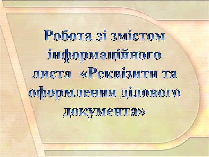 План лекції 1. Поняття про предмет та мету навчальної дисципліни. 2. Основні завдання вивчення дисципліни. 3. Документи: функції та класифікація. Склад та послідовність розміщення реквізитів.