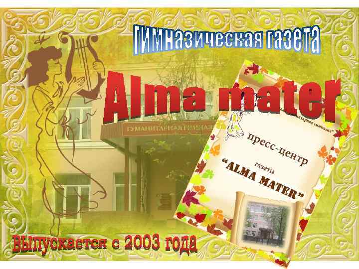 Название нашей газеты "Alma mater", наименование на латинском языке отражает и подчеркивает сущность классического учебного заведения, университета — так как «…(лат. alma mater - «кормящая, благодетельная мать» ) — старинное неформальное студенческое название учебных заведений (университетов, которые изначально давали в основном философское образование), как организаций питающих духовно…»