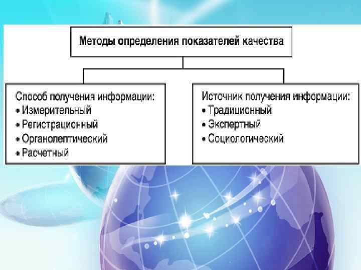 Экспертный источник информации — определение значений показателей качества осуществляется на основе решения, принимаемого группой специатистов-экспертов. Этим методом пользуются в тех случаях, когда показатели качества продукции не могут быть определены более объективными способами.