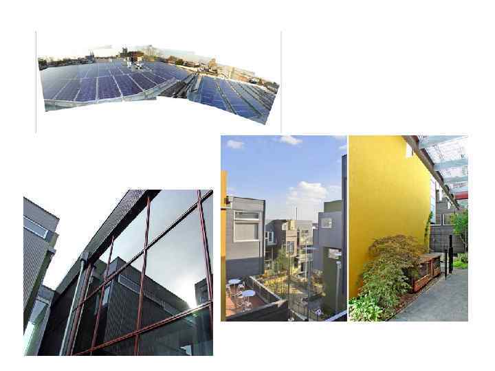 Здание оборудовано солнечными коллекторами Система солнечного теплоснабжения состоит из 8, установленных на зданиях солнечных коллекторов, общей площадью 1248 кв. м. Солнечные коллекторы встроены в конструкцию крыши жилого дома. Эти коллекторы установлены под углом 47 -60 град. Схема системы естественной вентиляции. Приток воздуха осуществляется через приточные отверстия в стене здания, расположенные за отопительными приборами(1). На конце вытяжного канала установлены дефлекторы специальной конструкции