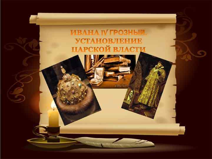 Венчание на царство. Первый «царь всея Руси» В 1547 г. , когда Ивану было 17 лет, митрополит Макарий венчал его на царство в Успенском соборе Московского Кремля. Бармы – широкое оплечье с нашитыми на него изображениями религиозного характера и драгоценными камнями, надевались русскими князьями и царями при коронации и во время торжественных выходов.