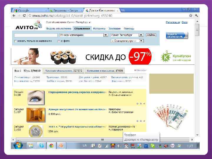 • От 1 рубля за клик • Сайт на первых страницах поисковой выдачи – с первого дня кампании • НО! • Пользователь проводит на поиске менее получаса в сутки!