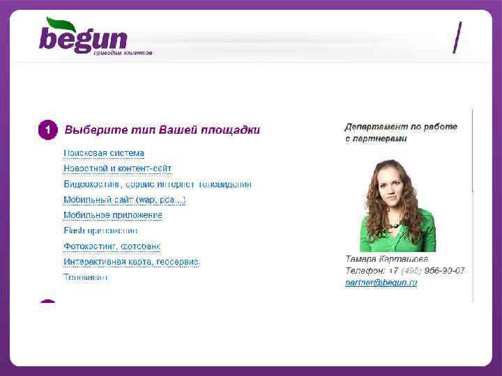 Офис В Санкт-Петербурге • • • Санкт-Петербург Невский пр. , БЦ «Невский 30» Офис 5. 6 Телефон (812) 9412472 http: //begun. ru