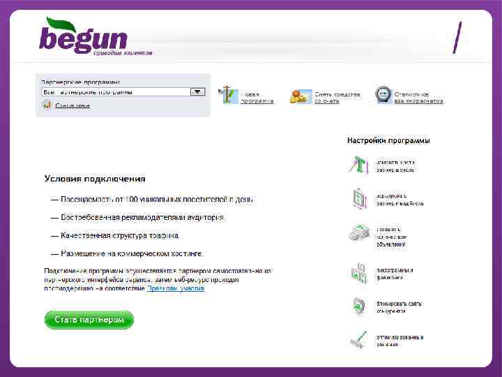 Площадки Баннеры показываются на партнёрских площадках Бегуна, среди которых: