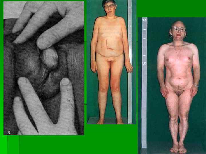 Первичный (гипергонадотропный) гипогонадизм 1. Врожденный: а) синдром анорхизма б) нарушения опущения яичек (крипторхизм, эктопия ) в) истинный хроматинположительный синдром Клайнфел-тера г) синдром Дель Кастильо д) синдром неполной маскулинизации е) синдром Шерешевского — Тернера у мужчин.