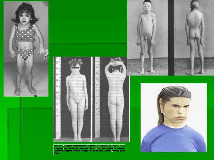 синдром Шерешевского — Тернера у мужчин Шерешевского-Тернера синдром - хромосомная болезнь, сопровождающаяся характерными аномалиями физического развития, низкорослостью и половым инфантилизмом. Характерными признаками синдрома Тернера при рождении являются избыток кожи на шее и другие пороки развития, особенно костно-суставной и сердечно -сосудистой систем, "лицо сфинкса", лимфостаз (застой лимфы, клинически проявляющийся крупными отеками). Для новорожденного характерны общее беспокойство, нарушение сосательного рефлекса, срыгивание фонтаном. В раннем возрасте у части больных отмечают задержку психического и речевого развития, что свидетельствует о патологии развития нервной системы. Наиболее характерным признаком является низкорослость. Рост больных не превышает 135 -145 см, масса тела часто избыточна.