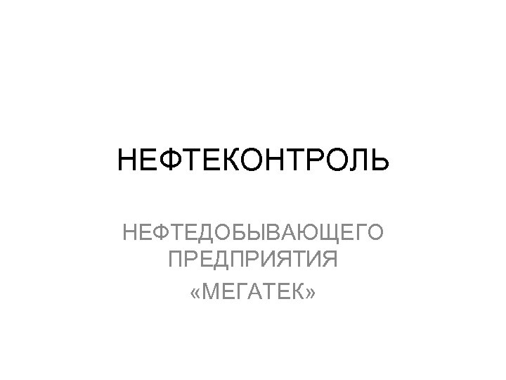НЕФТЕКОНТРОЛЬ НЕФТЕДОБЫВАЮЩЕГО ПРЕДПРИЯТИЯ «МЕГАТЕК»
