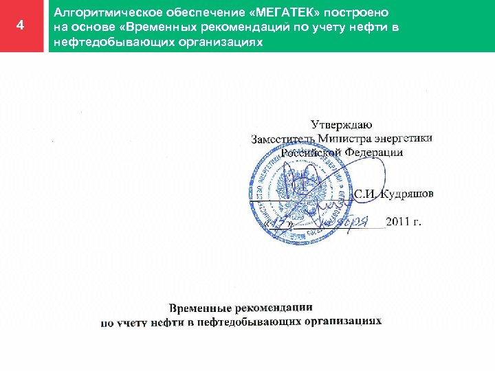 4 Алгоритмическое обеспечение «МЕГАТЕК» построено на основе «Временных рекомендаций по учету нефти в нефтедобывающих организациях