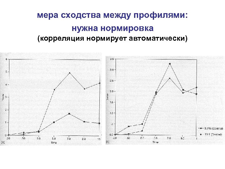 мера сходства между профилями: нужна нормировка (корреляция нормирует автоматически)