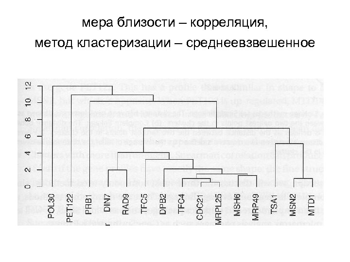 мера близости – корреляция, метод кластеризации – среднеевзвешенное