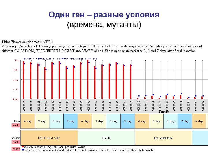 Один ген – разные условия (времена, мутанты)