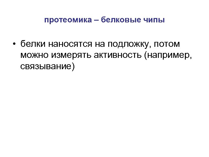 протеомика – белковые чипы • белки наносятся на подложку, потом можно измерять активность (например, связывание)