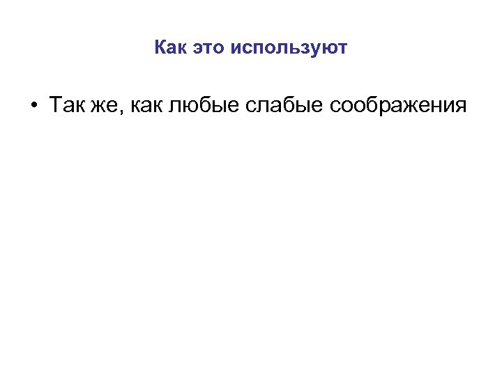 Как это используют • Так же, как любые слабые соображения