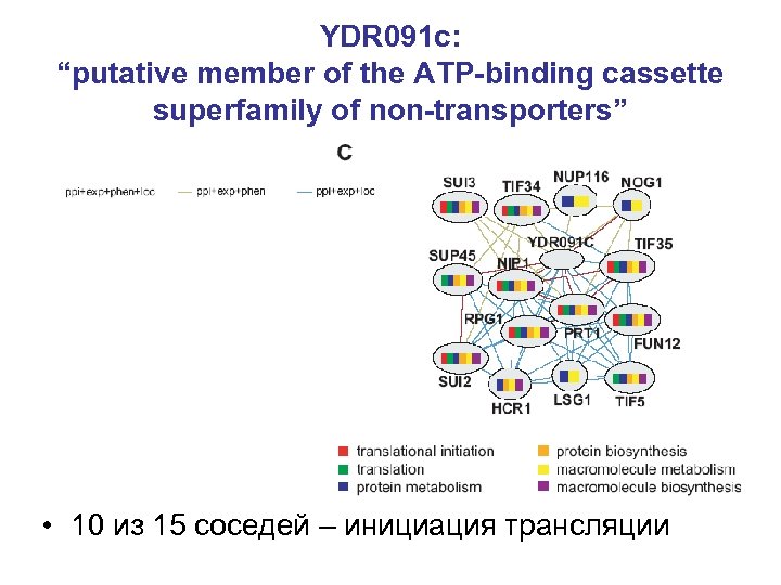YDR 091 c: “putative member of the ATP-binding cassette superfamily of non-transporters” • 10 из 15 соседей – инициация трансляции