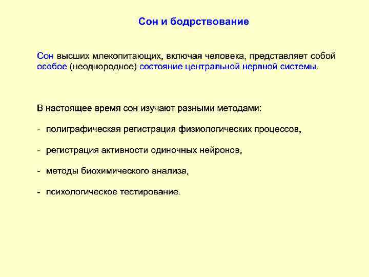 НЕЙРОБИОЛОГИЯ И ПСИХОФИЗИОЛОГИЯ СНА “Ни один исследователь не может объяснить, что за сила сковывает мозг и тело, погружая их в состояние непреодолимого оцепенения, и что за польза живому существу от такого периодического прекращения активности”. Самюэль Джонсон