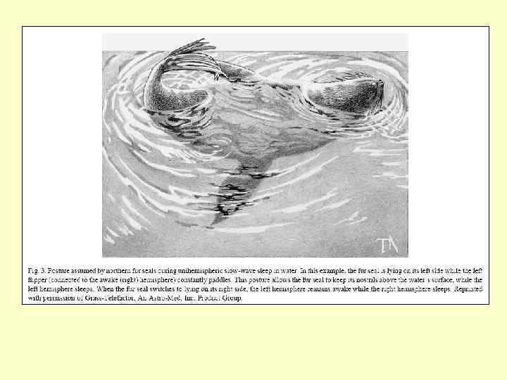 Отсутствие парадоксального сна ? • ПС в “типичной форме” (низкоамлитудная ЭЭГ, атония, быстрые движения глаз) не регистрируется у китообразных • ПС регистрируется у других водных млекопитающих (тюлени, морские коровы, морские выдры)
