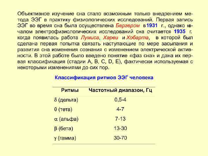 Классификация ритмов электроэнцефалограммы у человека альфа (7 -13 Гц) бета (13 -30 Гц) гамма (>30 Гц) дельта (0, 5 -4 Гц) тета (4 -7 Гц)