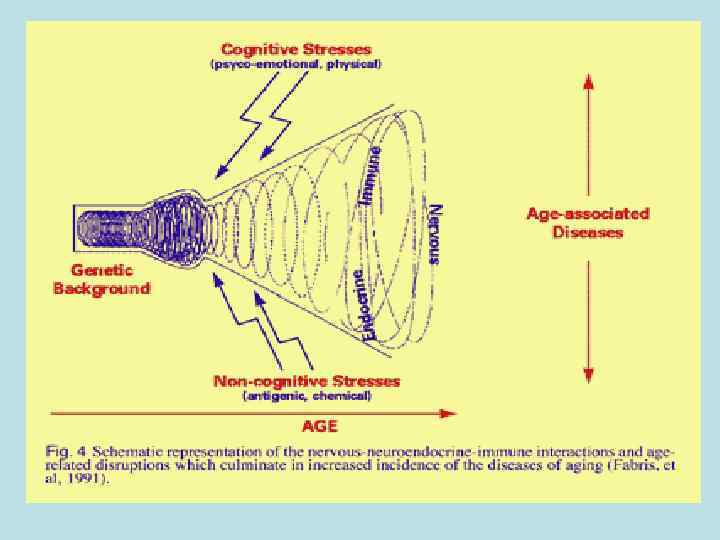 Иммунорегуляторные эффекты нейроэндокринных пептидов (Blalock, 1989) • АКТГ – подавление синтеза Ig и IFNγ, усиление пролиферации В-клеток, подавление функциональной активности макрофагов, индуцированной IFNγ. Подавление продукции цитокинов В-клетками. Блокада способности IFNγ активировать противоопухолевую активность Мф • ТТГ – усиление синтеза Ig (опосредованно через Тклетки) • СТГ – усиление пролиферации и дифференцировки Т-эффекторов, усиление продукции макрофагами супероксидных анионов. При снижении уровня СТГ – подавление гуморального и клеточного и. о.